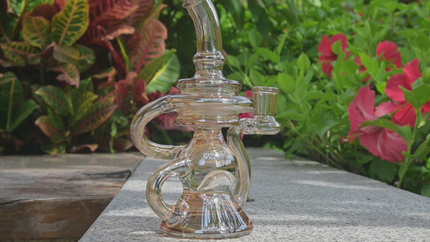 9" Recycler Water Pipe – Showerhead Perc, Dual Loop Recycler, Bent Neck