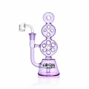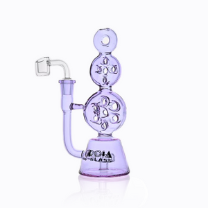 Crafted from premium borosilicate glass, this recycler rig features three vertically arranged round chambers that give it a sculptural laboratory look while also maximizing functional surface area. The result is a highly refined compact dab rig that offers excellent vapor conditioning, smooth draws, and standout shelf appeal.