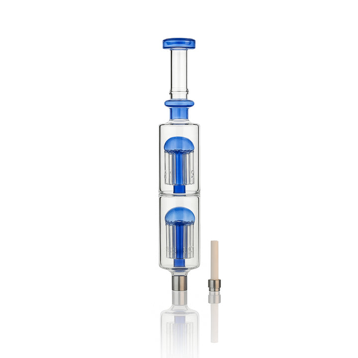 The 12 Inch Double Chamber Tree Perc Nectar Collector is built for users who want maximum diffusion, maximum stability, and the smoothest possible vapor from a handheld concentrate tool. With two full-size tree percs stacked vertically, this system delivers a level of refinement closer to a scientific rig than a traditional nectar collector.