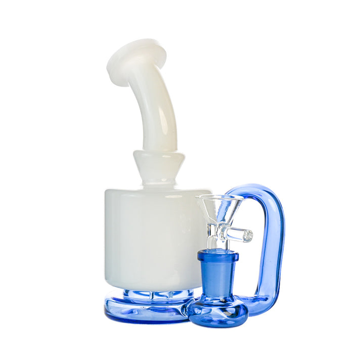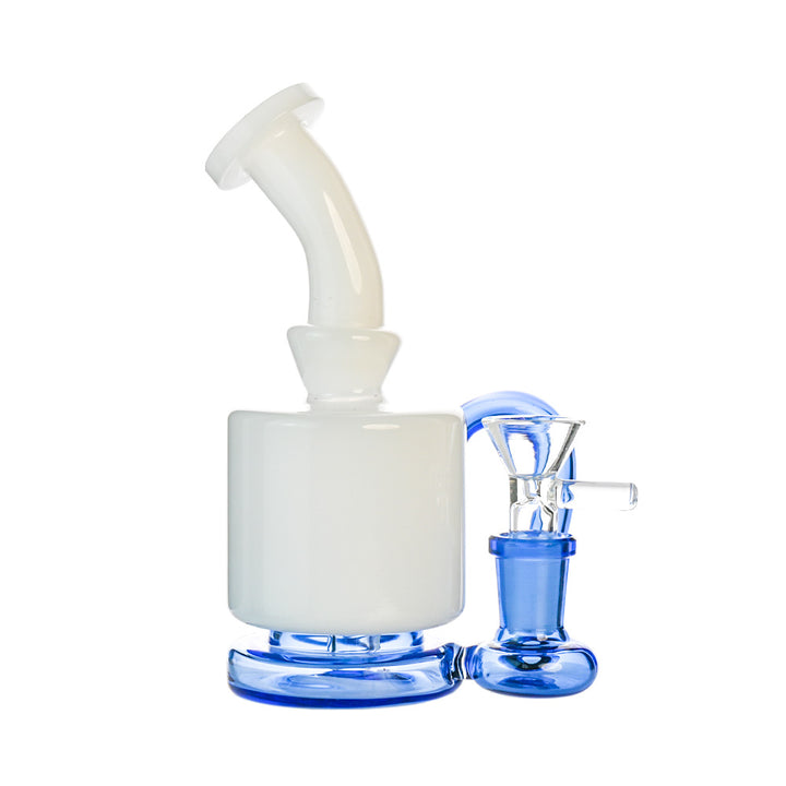 Milk White & Blue Recycler – Opaque White Chamber + Blue Accents