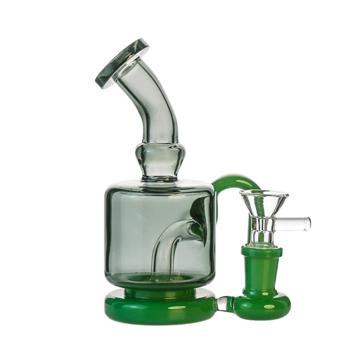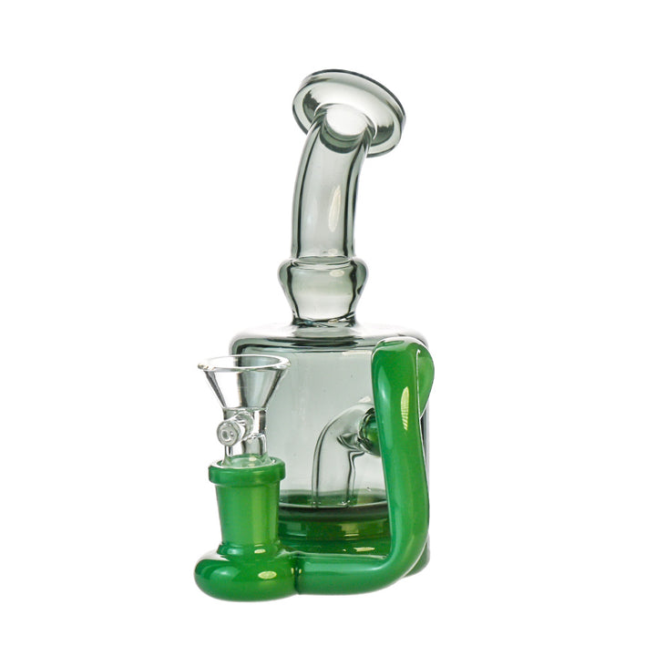 This 6-inch recycler rig delivers clean, flavorful hits through a compact modern silhouette built around a wide barrel chamber and an external recycler loop. The angled mouthpiece offers a comfortable draw while reducing splashback, and the rig’s vortex recycling creates constant water motion for smoother, cooler vapor.