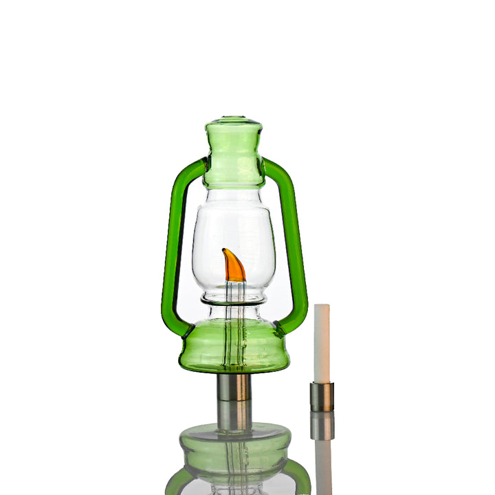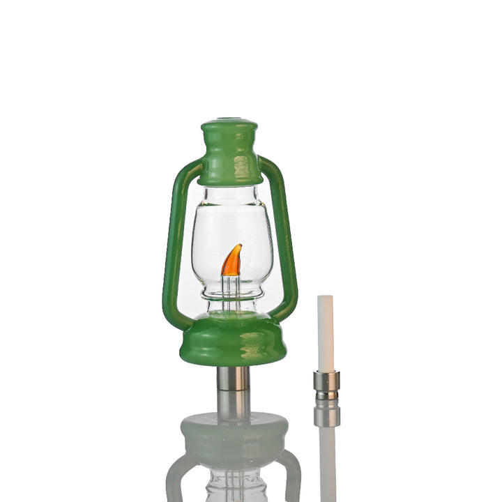 This 8-inch lantern-shaped nectar collector merges classic outdoor-lantern aesthetics with a clean borosilicate build, complete with an orange “flame” detail suspended inside the chamber. It’s equal parts quirky display piece and smooth, daily-use dab tool.
